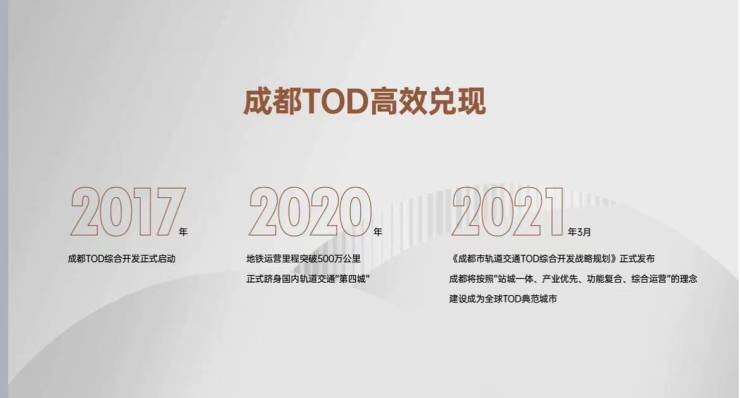 成都★◈✿:行政面积1.4万平方公里★◈✿,常住人口2100万★◈✿,GDP20000亿元★◈✿,全国第三个拥有双4F国际机场城市★◈✿,位列全国新一线榜首★◈✿。TOD★◈✿:以公共交通为导向的开发模式★◈✿,以交通架构★◈✿、居住★◈✿、商业★◈✿、休闲★◈✿、文化★◈✿、医疗等功能组织★◈✿,优化城市运行★◈✿,打造5分钟经济生活圈★◈✿。